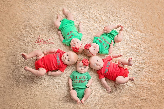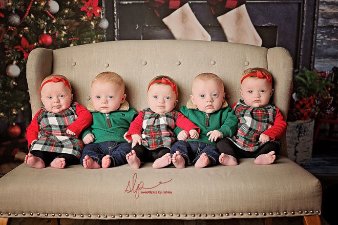 Để ghi dấu ấn và chào mừng Giáng sinh đầu tiên của các con, Briana cùng chồng Jordan đã quyết định nhờ đến nhiếp ảnh gia chụp cho 5 nhóc tì xinh xắn này một bộ ảnh Giáng sinh thật đáng nhớ. Briana luôn muốn làm điều gì đó thật đặc biệt cho các con của mình, những bức ảnh này cũng sẽ trở thành món quà trong tấm thiệp Giáng sinh tặng các con.