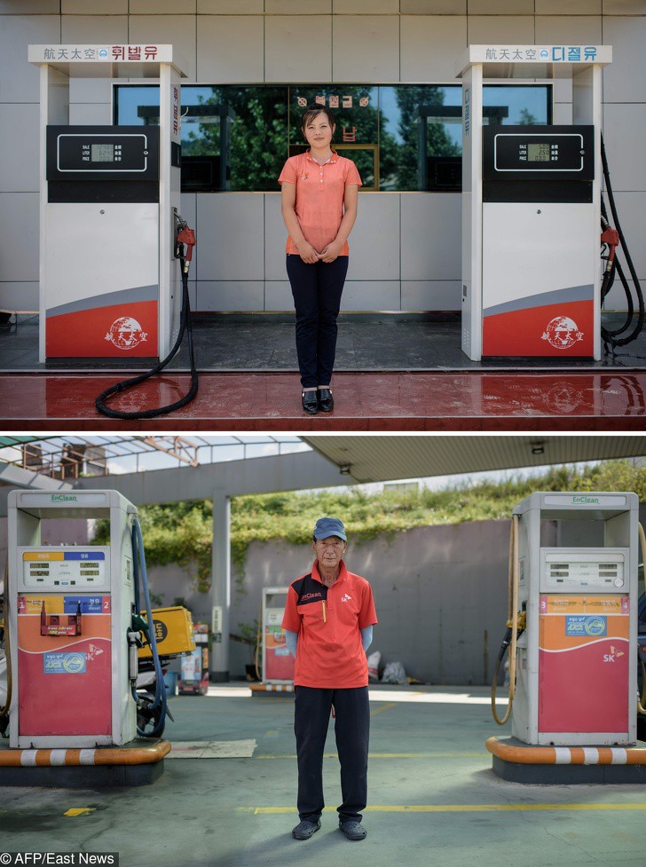 4. Nhân viên trạm xăng ở Triều Tiên và Hàn Quốc.