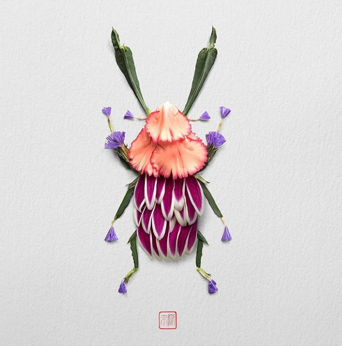 14. Một con bọ cánh cứng với sự kết hợp của nhiều loại hoa lá.