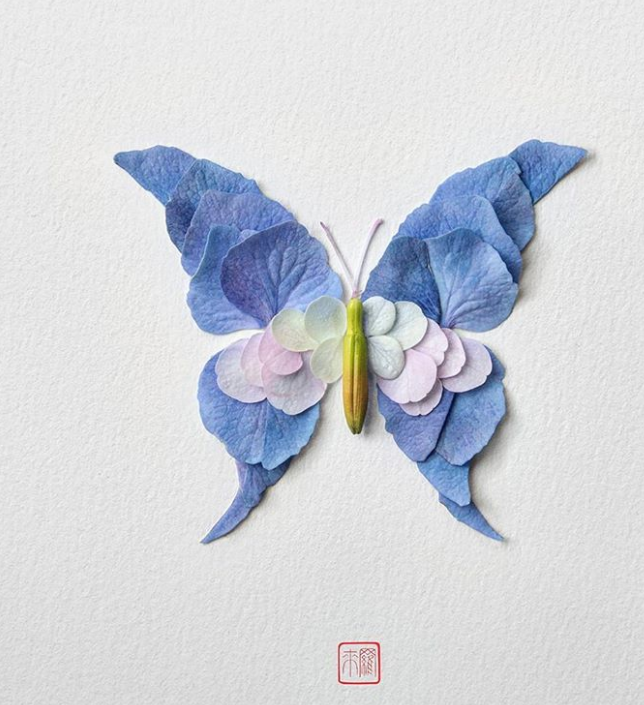 18. Con bướm từ cánh hoa cẩm tú cầu.