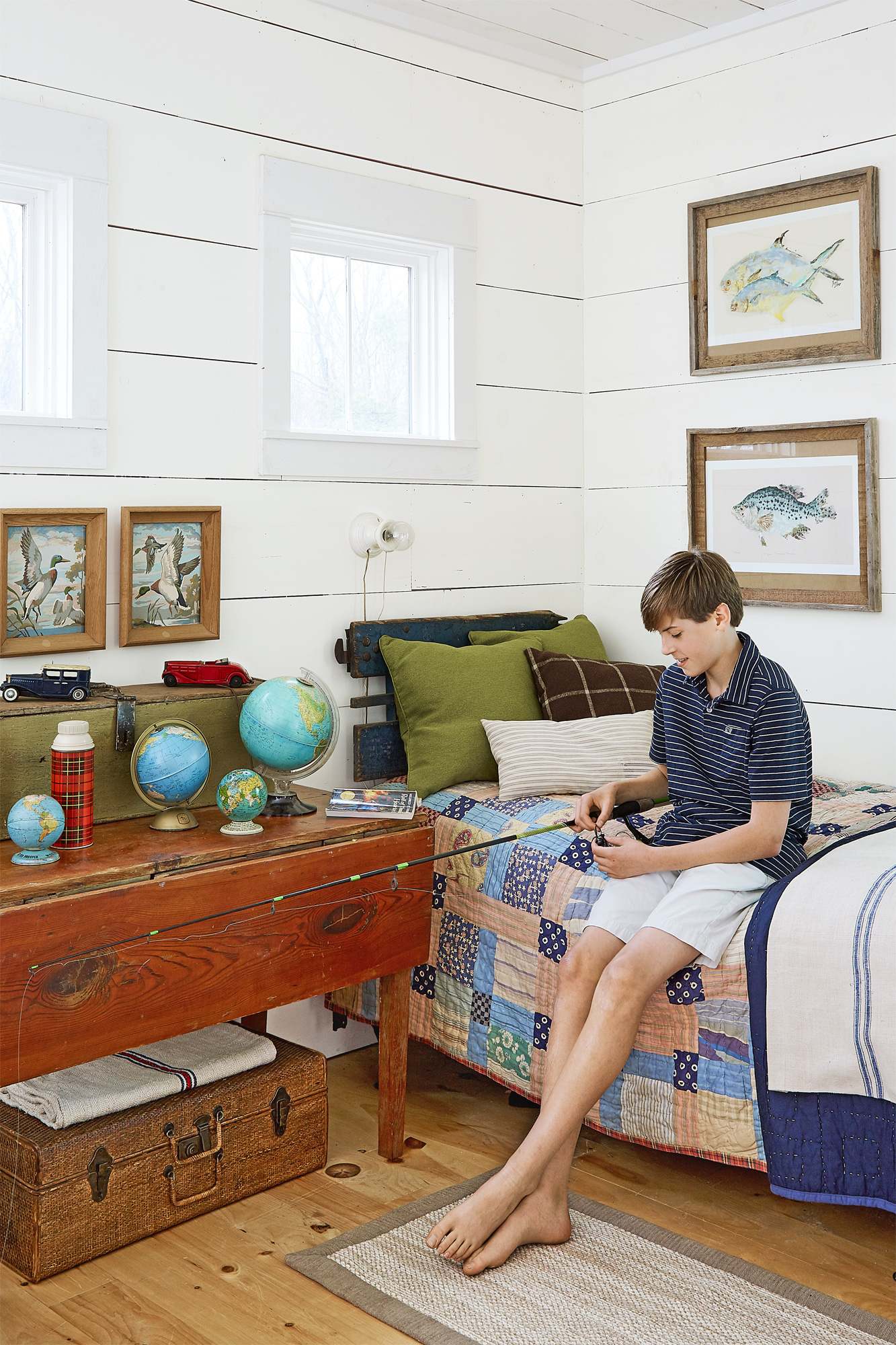 Trong một phòng ngủ của cậu con trai, chủ nhà bài trí không gian rất phù hợp và cũng bình dị hòa chung tổng thể.