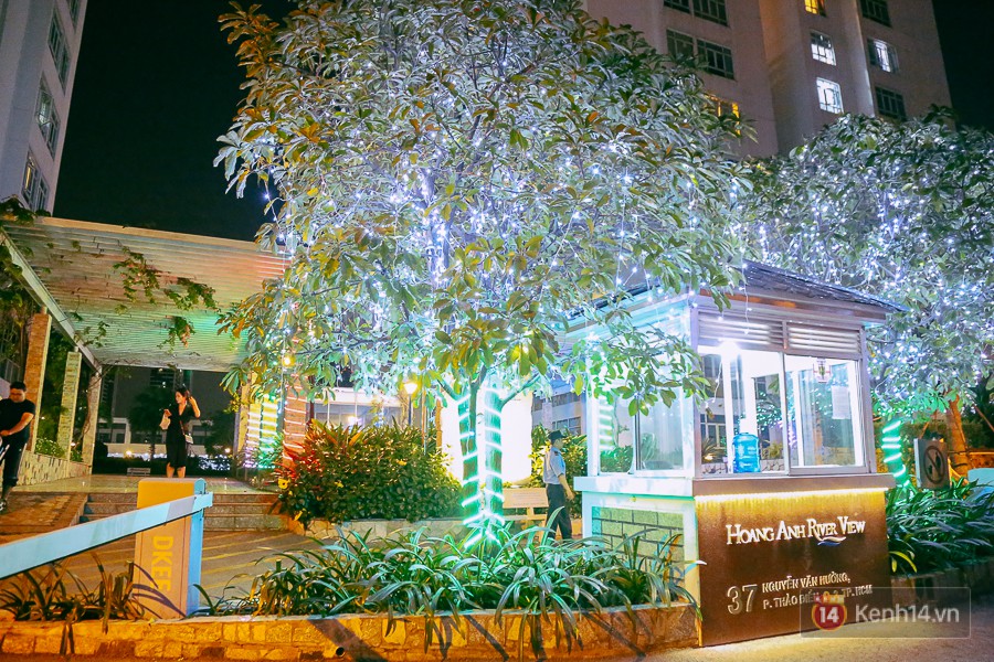 Ngay cả con hẻm dẫn vào khu Villa Thảo Điền cũng được trang trí đèn led trên cây xanh ở hai bên. Đi sâu vào bên trong, con hẻm lung linh và huyền ảo khiến nhiều người thích thú.