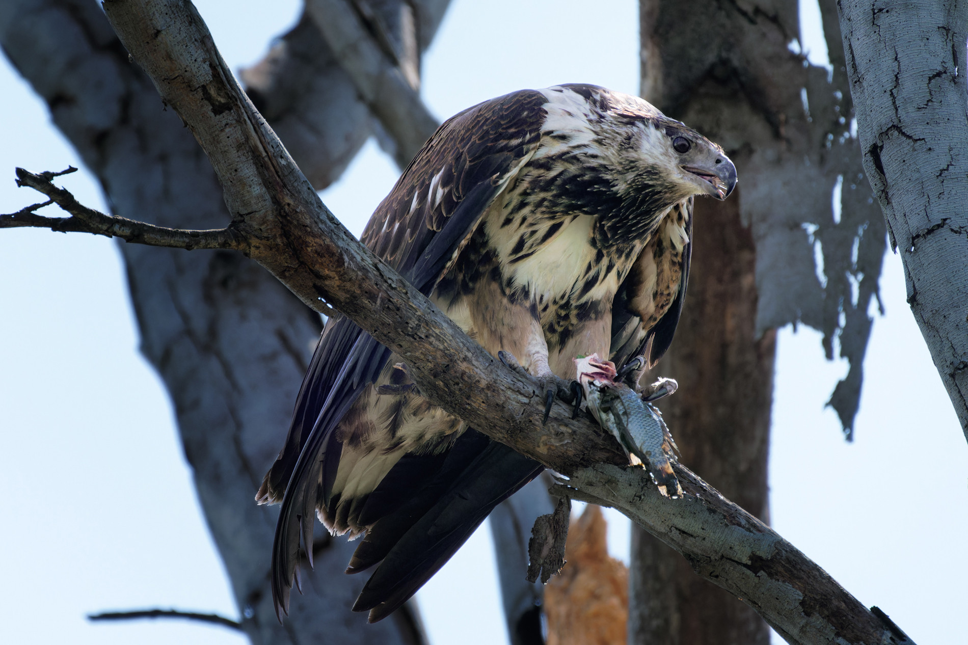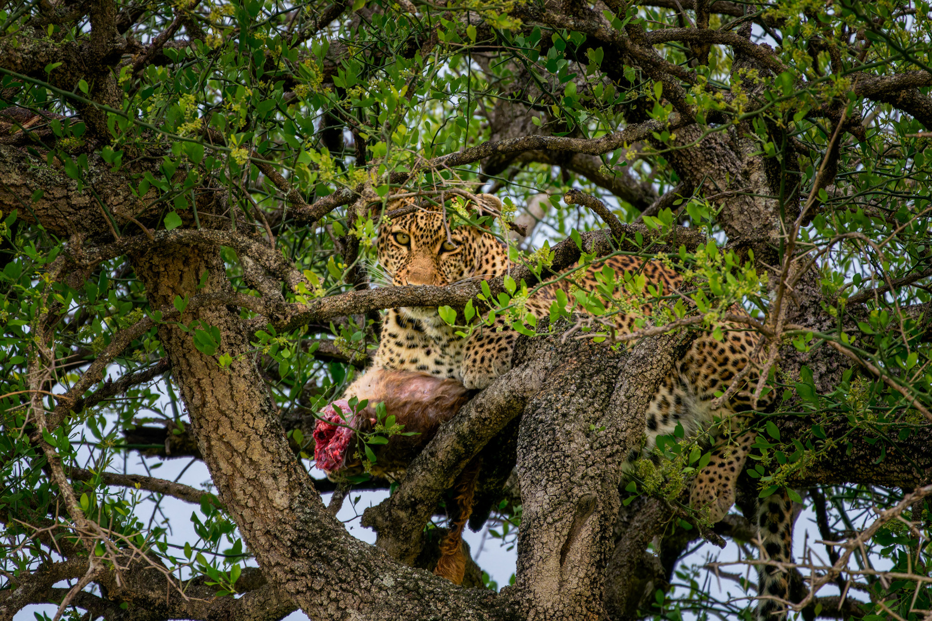 “Mình cũng ấn tượng với khoảnh khắc báo hoa mai tha mồi lên cây để xẻ thịt. Lúc đó khoảng 17h rồi, mình không hy vọng chụp được cảnh đó trong chuyến đi.